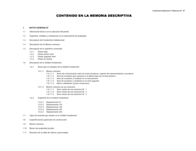 Todas estas áreas deberán contar con una descripción, sus medidas y colindancias y adicionalemente a ellas, un documento gráfico, que puede consistir en un plano reducido o un croquis, con toda la información anteriormente mencionada y que con todo esto, no existiran dudas de la ubicación en el condominio habitacional.